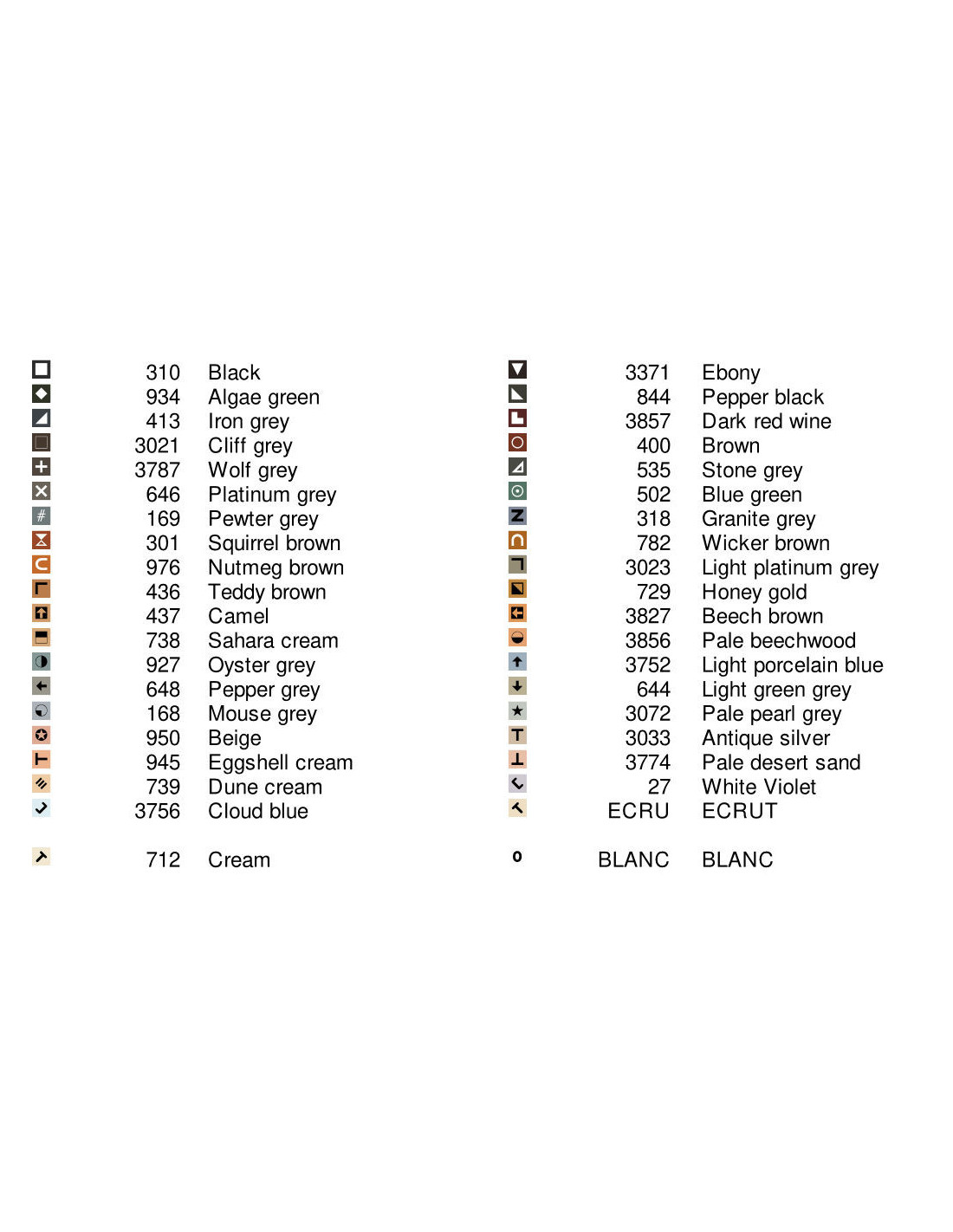 Toutes les références de fils proposées pour la réalisation des modèles, sont extraites de la palette DMC.