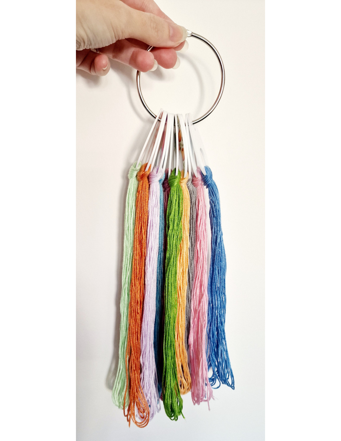 Chaque trou peut contenir une échevette entière de 8m ainsi que le reste de fil à côté