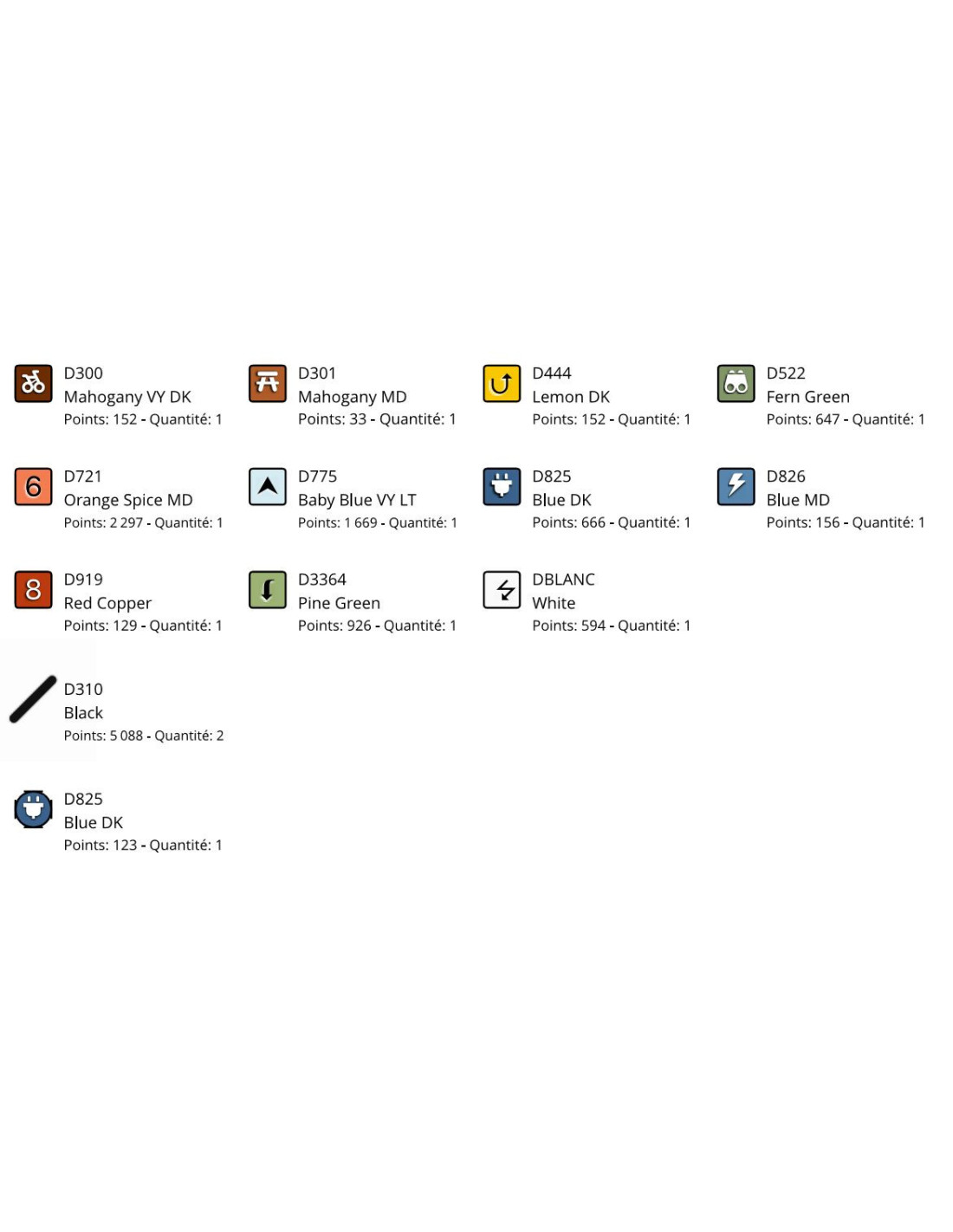 Toutes les références de fils proposées pour la réalisation des modèles, sont extraites de la palette DMC.