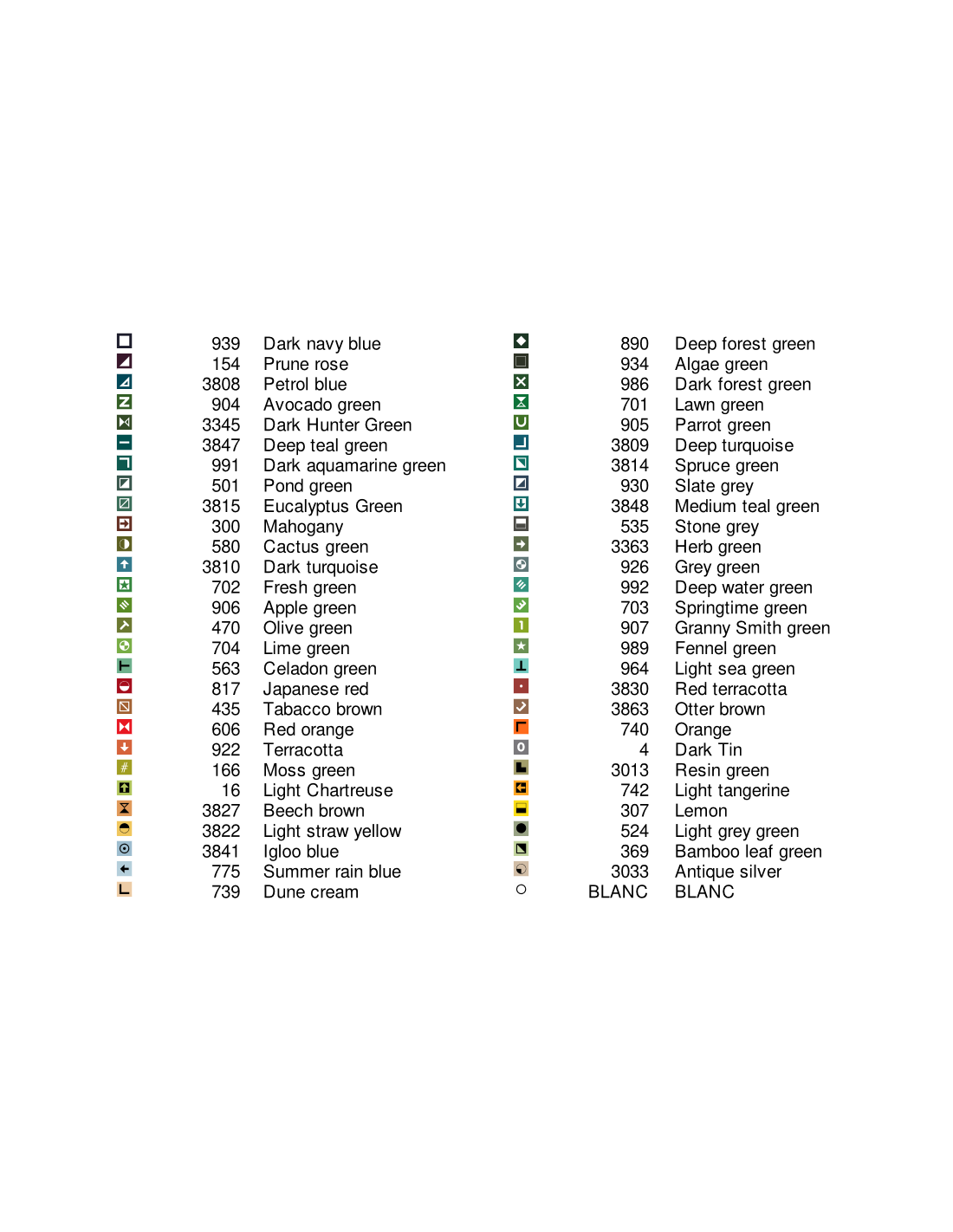 Toutes les références de fils proposées pour la réalisation des modèles, sont extraites de la palette DMC.