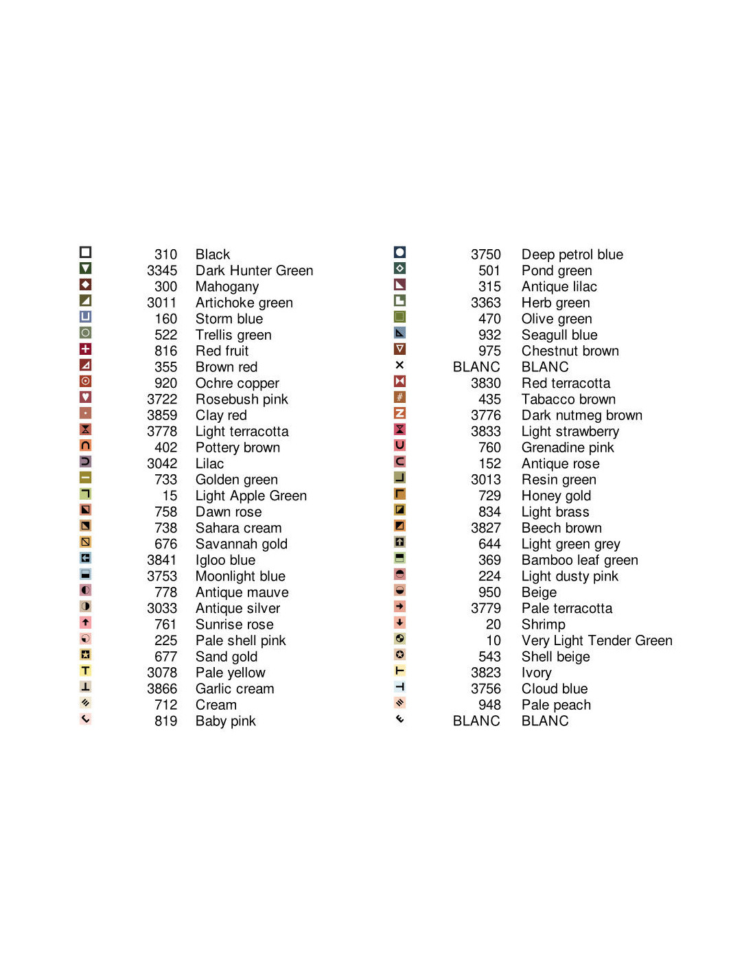 Toutes les références de fils proposées pour la réalisation des modèles, sont extraites de la palette DMC.