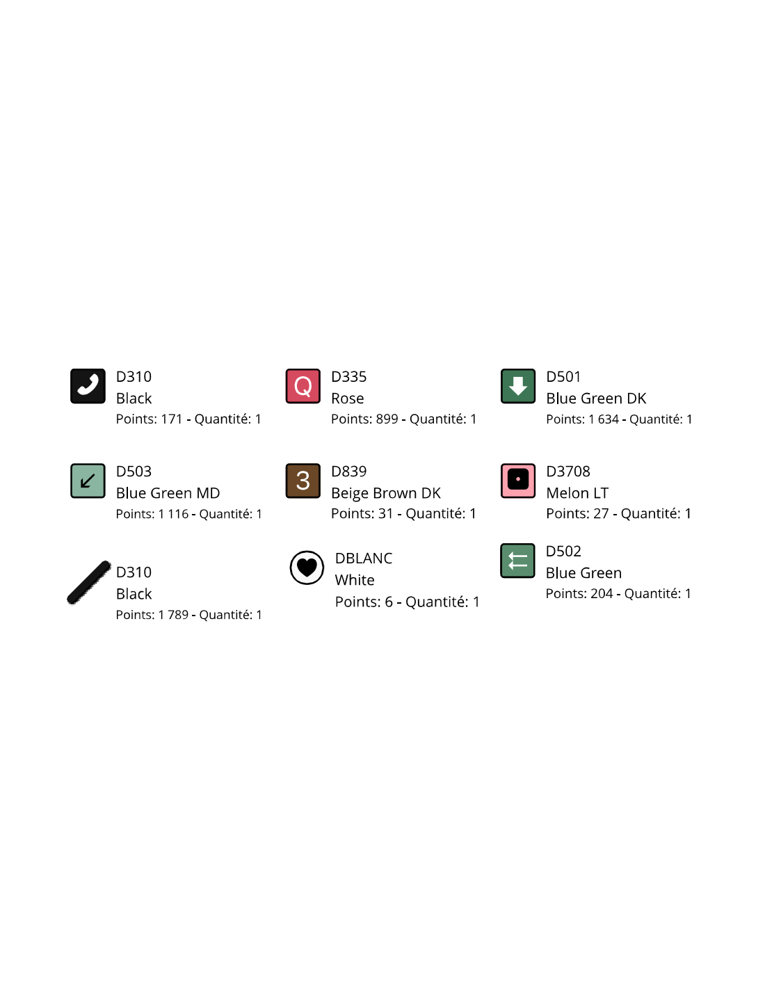 Toutes les références de fils proposées pour la réalisation des modèles, sont extraites de la palette DMC.