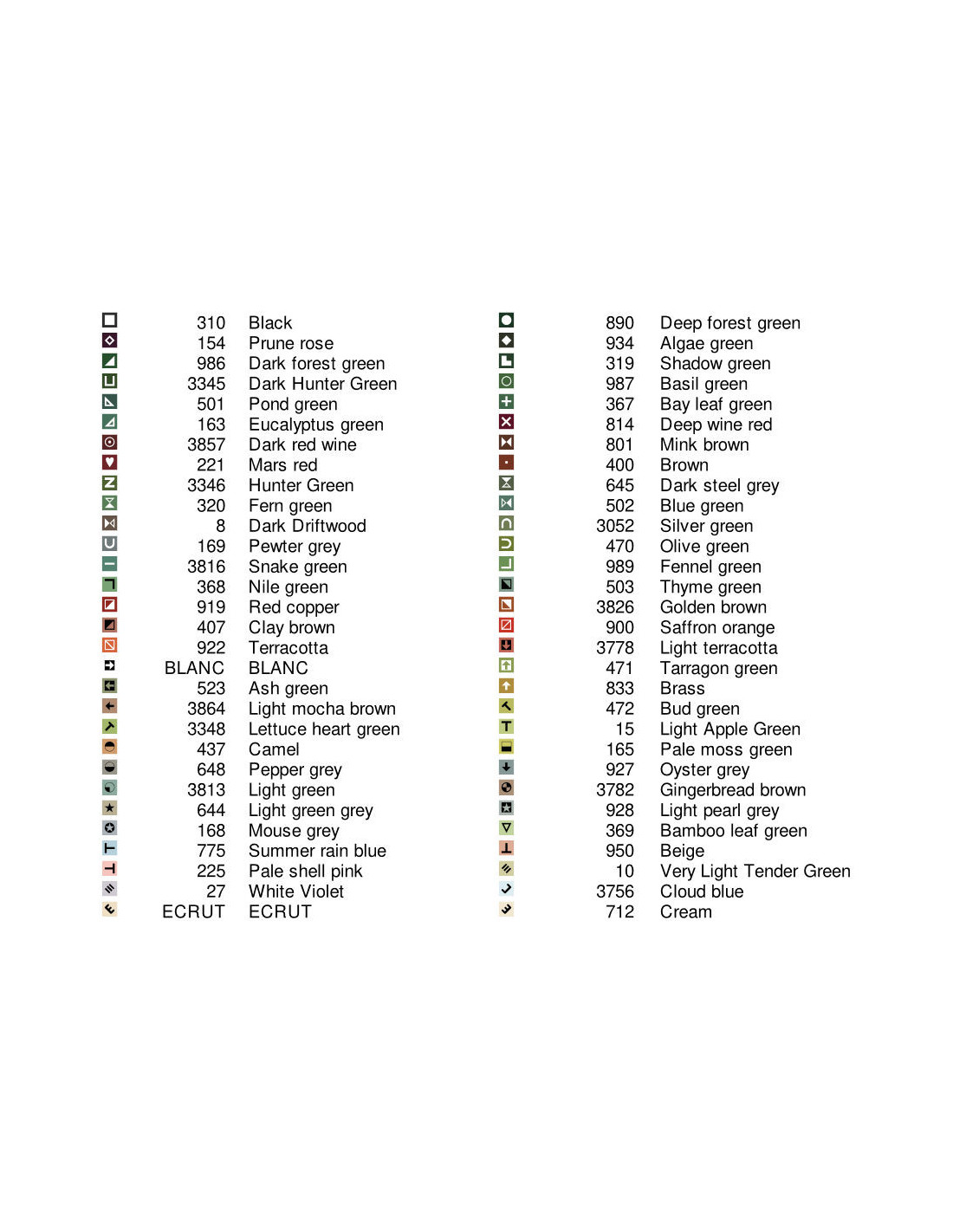 Toutes les références de fils proposées pour la réalisation des modèles, sont extraites de la palette DMC.