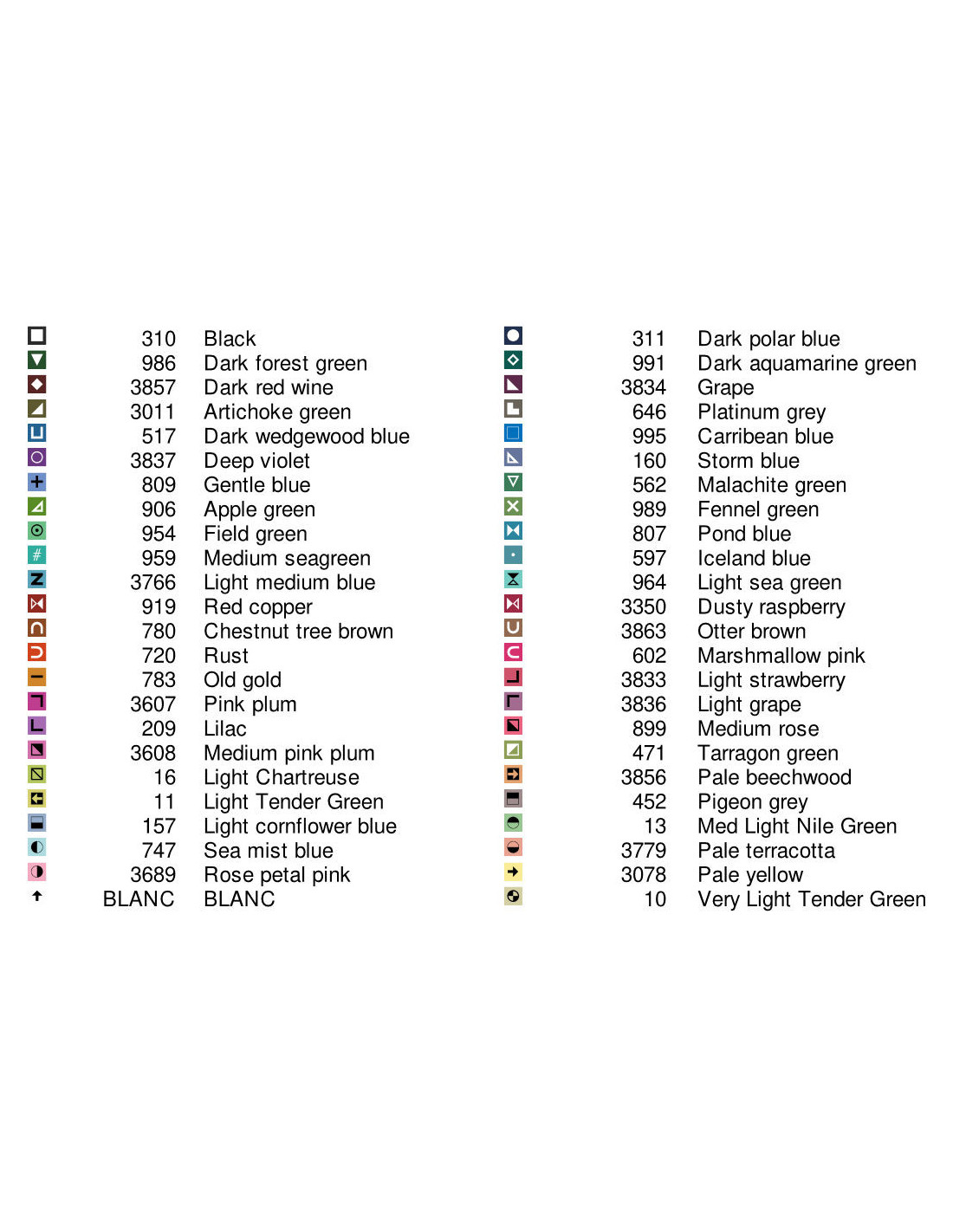 Toutes les références de fils proposées pour la réalisation des modèles, sont extraites de la palette DMC.