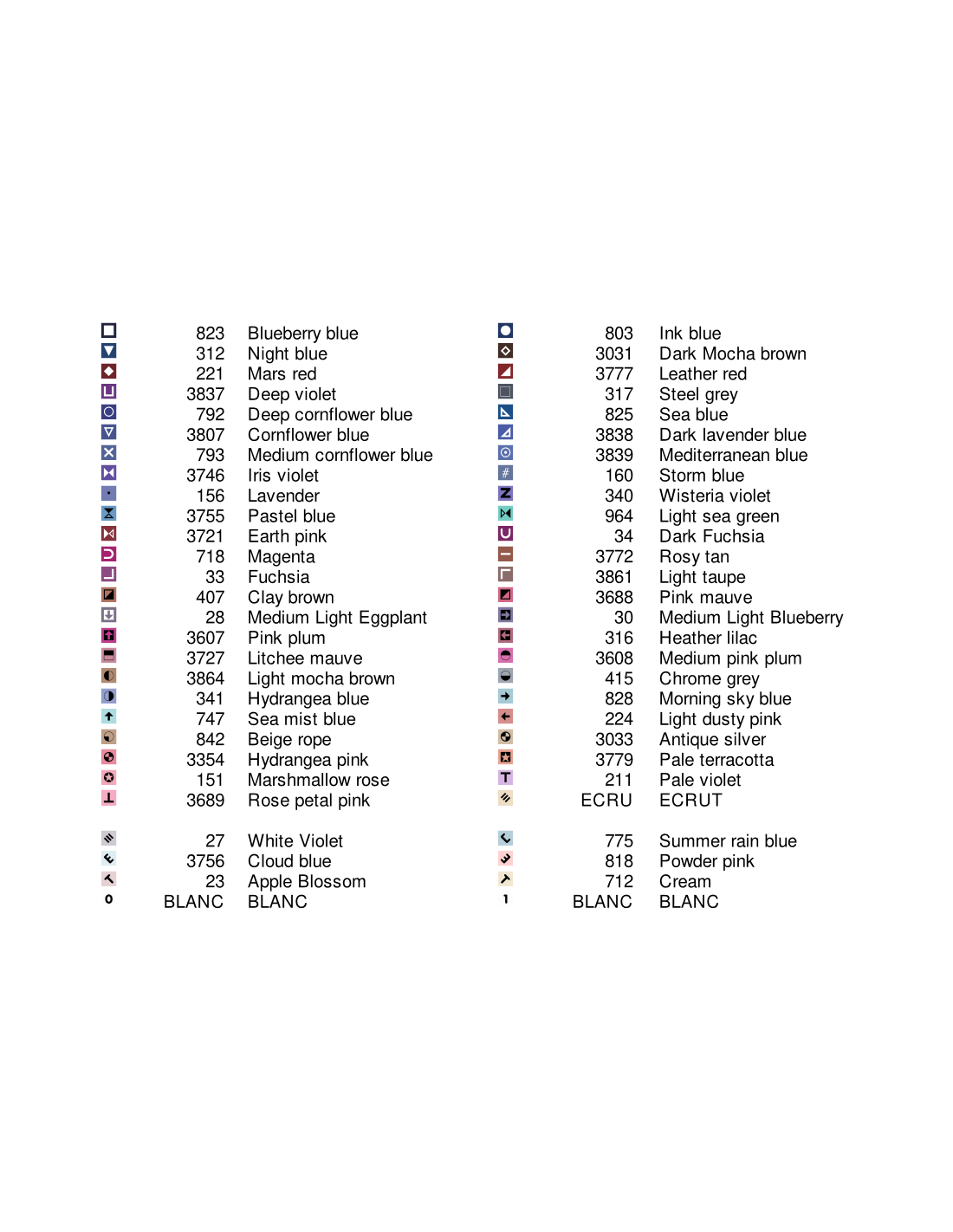 Toutes les références de fils proposées pour la réalisation des modèles, sont extraites de la palette DMC.
