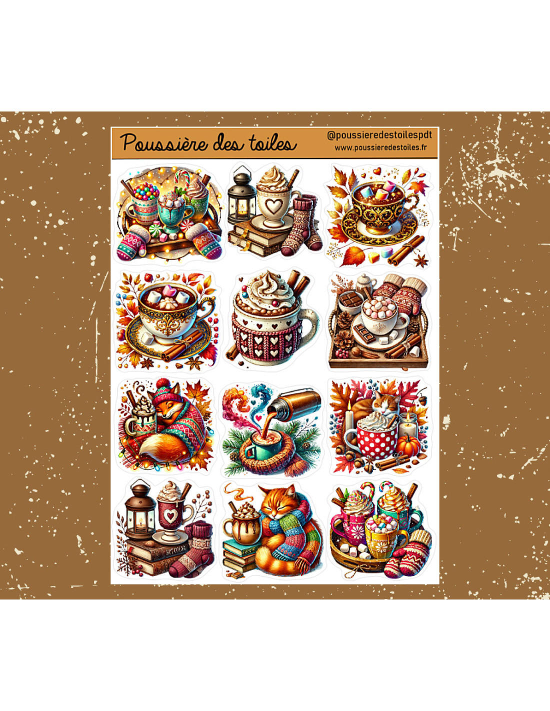 Réf 164 Feuille d’autocollants, Stickers pour Bullet Journal tasses