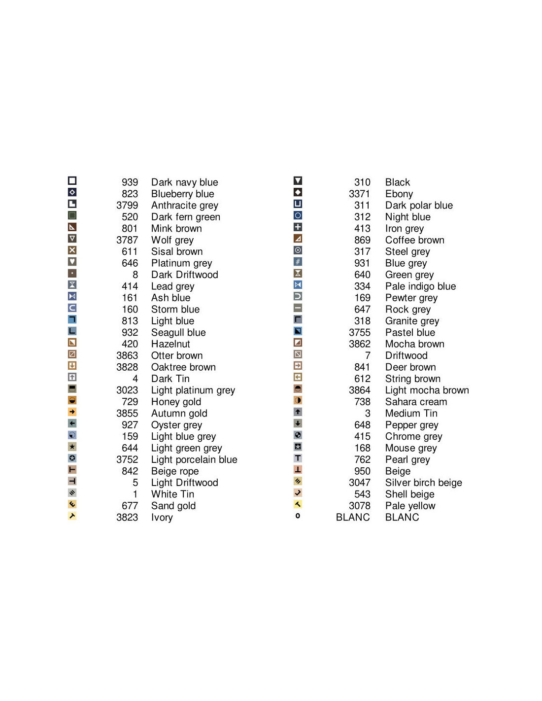Toutes les références de fils proposées pour la réalisation des modèles, sont extraites de la palette DMC.