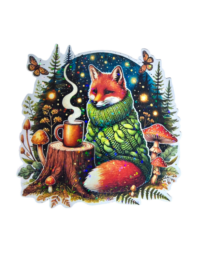 Stickers holographique renard coucher de soleil